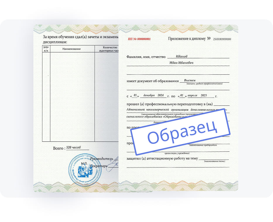 Обращаем ваше внимание, что для поступления на курсы переподготовки к нам наличие высшего или среднего профессионального образования обязательно.